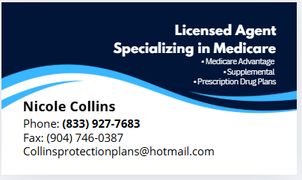 (833)927-7683 - Main (833) 92-PROTECT (904) 746-0387 - Local E - mail : Collinsprotectionplans@hotmail.com <<https://medicareagentshub.com/agents/nicole-collins-32222<<