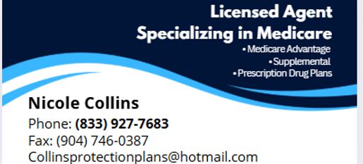 (833)927-7683 - Main (833) 92-PROTECT (904) 746-0387 - Local E - mail : Collinsprotectionplans@hotmail.com <<https://medicareagentshub.com/agents/nicole-collins-32222<<